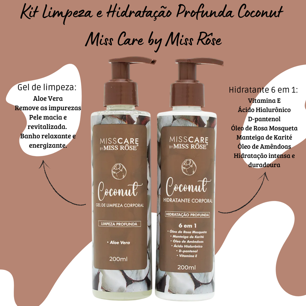Hidratante: O segredo para uma pele macia e radiante está no nosso novo Hidratante Corporal Coconut Miss Care By Miss Rôse. Oferecendo uma hidratação intensa e duradoura, sua fórmula de rápida absorção deixa a pele suave e perfumada. Ideal para todos os tipos de pele, proporcionando uma experiência energizante em cada aplicação. Sinta a diferença!